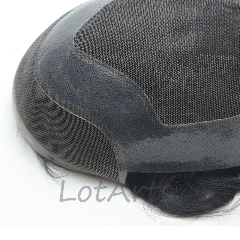 Hollywood Lace Toupee is also the popular men’s lace hair systems base design in Reaita Hair Factory. It is highly recommended for the undetectable hairline and comfort. The lace front hair pieces are made with swiss lace in centre part and clear pu all around. 1 inch Swiss lace at the front hairline with bleaching knots to make the hair system more natural.